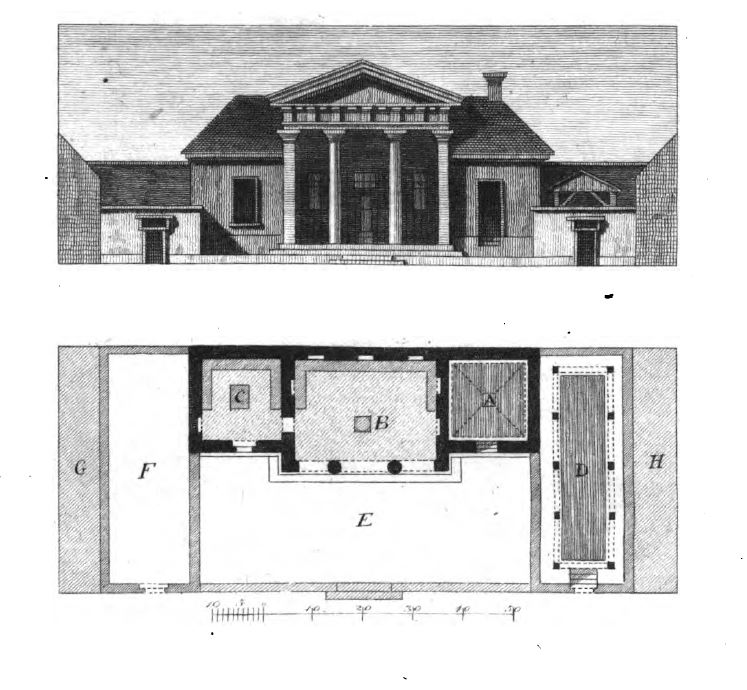 Da sich Schreibers späterer Freund Ludwig Frommel noch in Ausbildung bzw. auf Studienreise befand, könnte der Stich vieleicht von Frommels Lehrer Christian Haldewang (1770-1831) stammen, der etwas jünger wie Schreiber war, oder von Seyffer aus Baden-Baden nach einer Zeichnung von Schaffroth. Da Schreiber das Werk in Karlsruhe drucken lies und auch die Ansicht bzw. der Grundriss der Antiquitätenhalle von Weinbrenner kam, ist zu vermuten, dass auch die Ansicht aus dem Karlsruher Umfeld kam. Haldenwang wechselte 1804 von der chalkografischen Gesellschaft (Kupferstich-Atelier) aus Dessau als Hofkupferstecher nach Karlsruhe und war somit mit den potenziellen Auftraggebern der höflichen Verlagsbranche vernetzt.